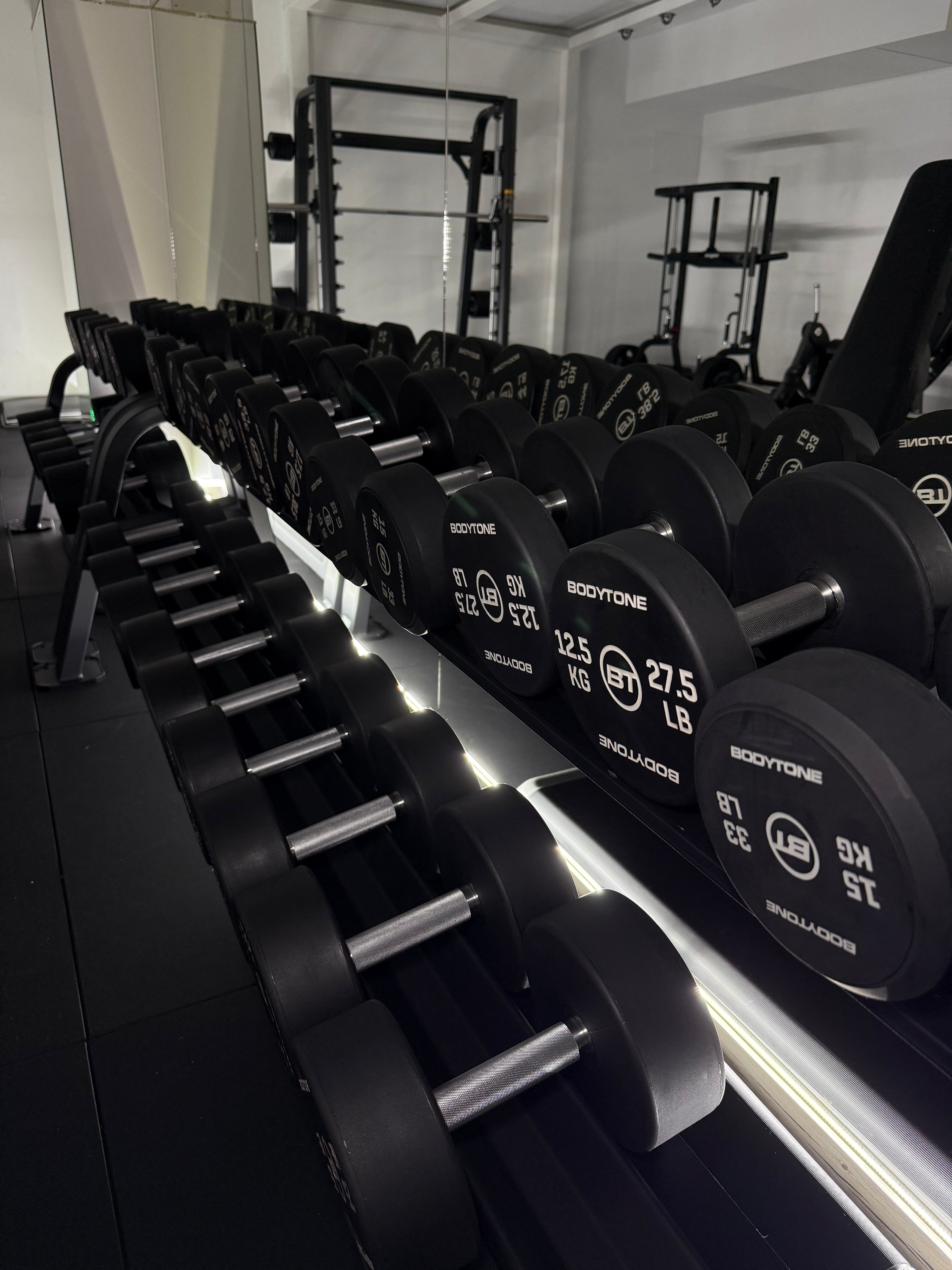 Entrena con maquinaria de gama alta Bodytone, seleccionada por su precisión y ergonomía. Desde la sentadilla pendular hasta la prensa vertical, cada equipo está diseñado para sacar lo mejor de ti, sin comprometer tu seguridad.